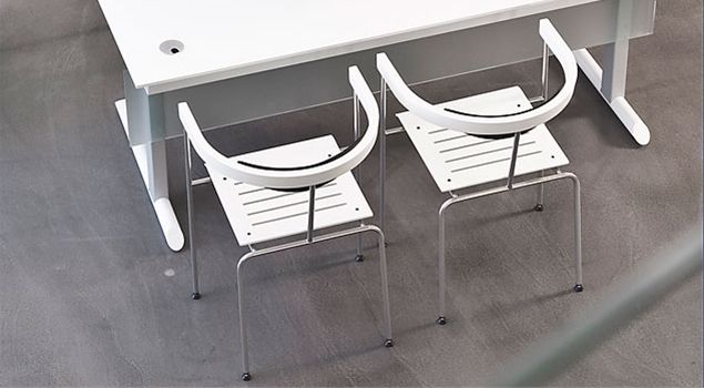 The “back-on-back-stacking” saves an upholstered seat from the usual marks.