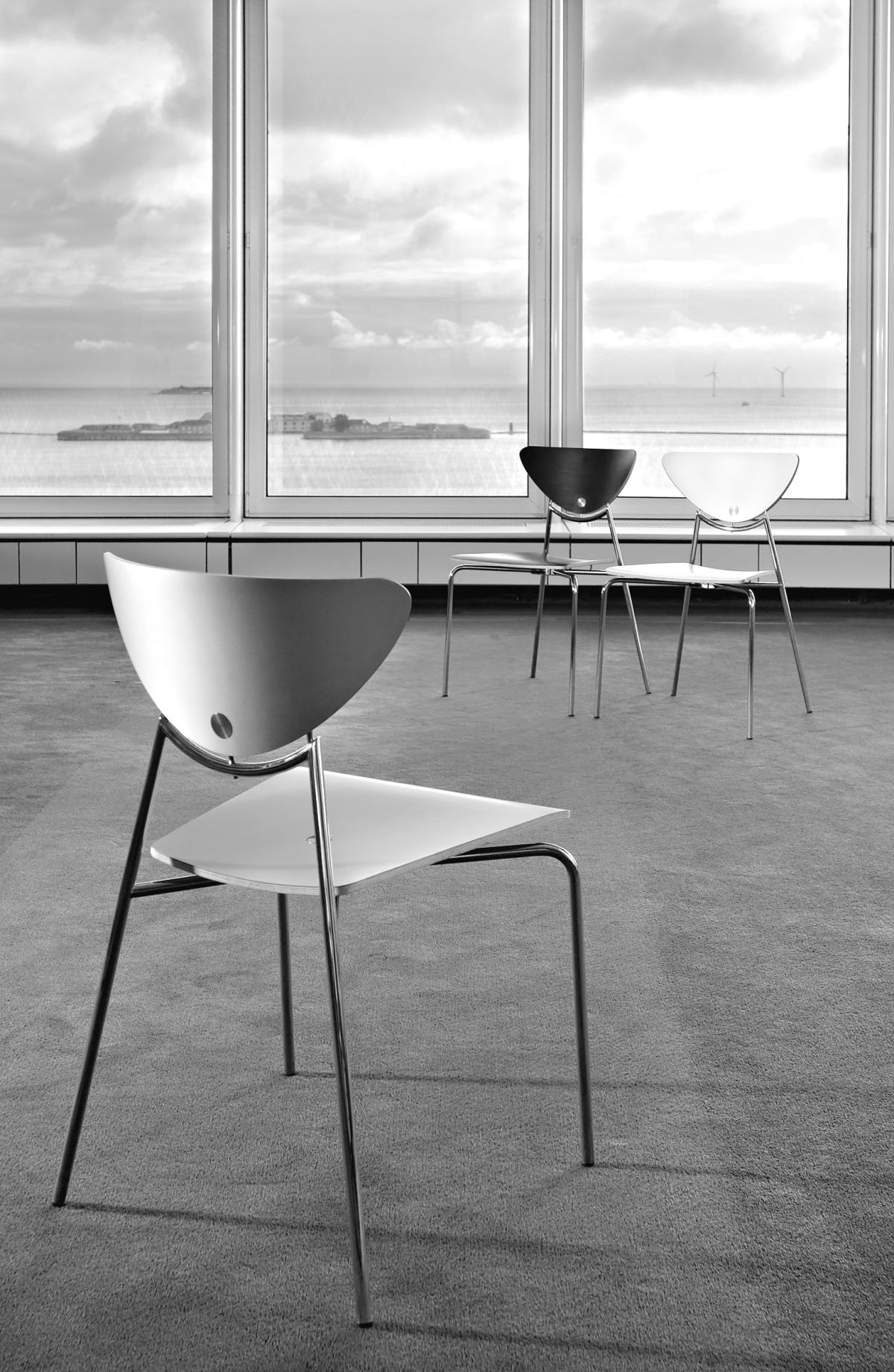 CLOUD is a light stacking chair, having its name from the soft shaped back, hoovering above the significant steel-tube-frame. As clouds over a calm ocean, the back relates to the horizontal plane of a table-top.