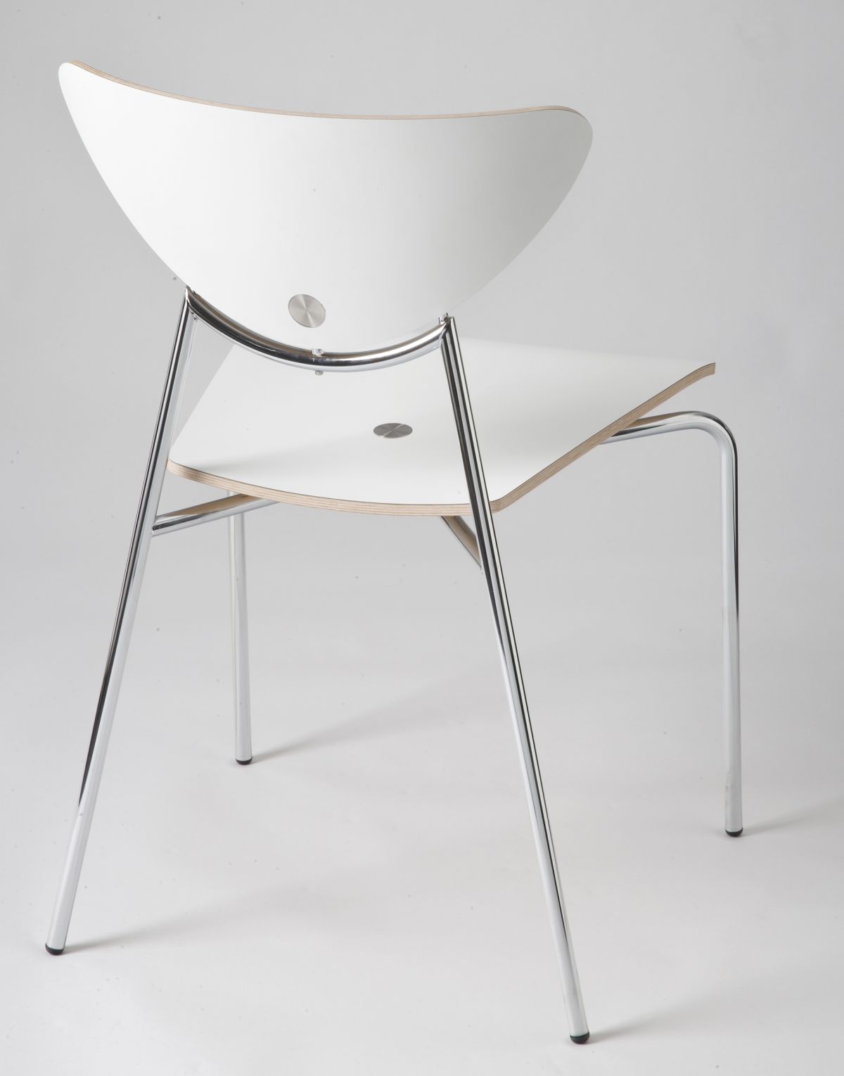 In this way the three very thin – almost “invisible” – connections together make a strong assembly and the gap between back and frame becomes very airy.