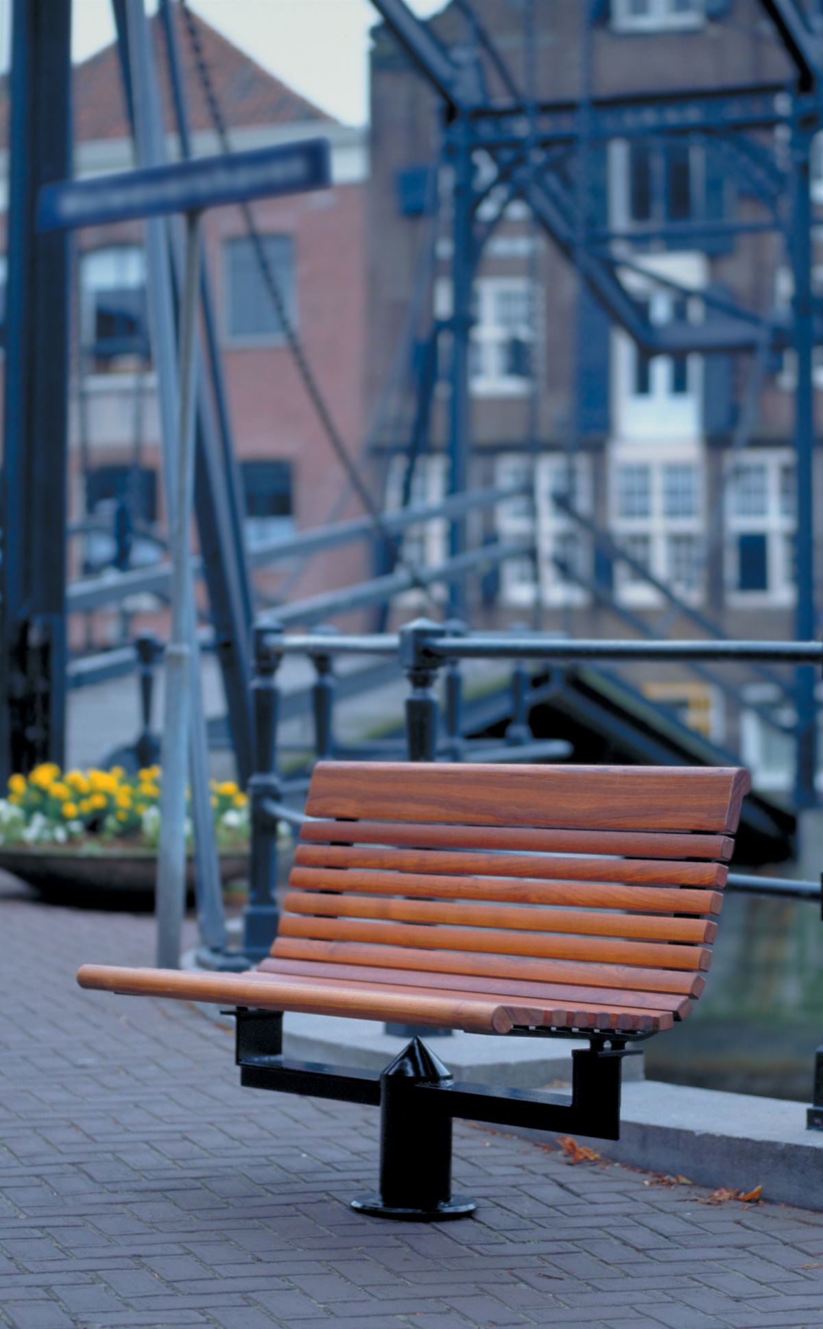 The innovative one-column-construction for the shorter versions, solves several problems known from more traditional types of benches: Mounting on sloping terrain, cleaning around the bench etc.